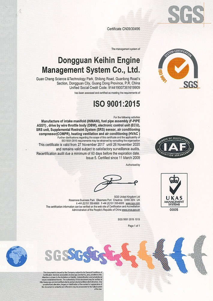 我司在2004年取得ISO9001品质认证,2005年取得ISO14001环境认证,2007年取得IS16949认证,2017年取得IATF16949认证。